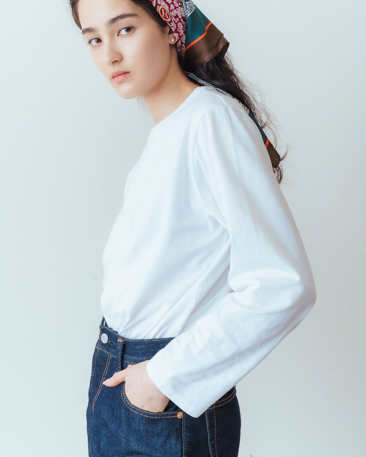 ニットやスウェットに重ねた時に、首元からのぞくよう、開き具合に拘って作ったシンプルなロングスリーブが2枚セットになったパックT