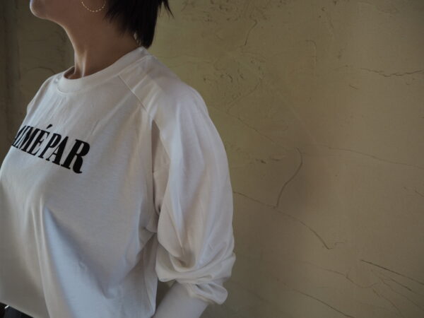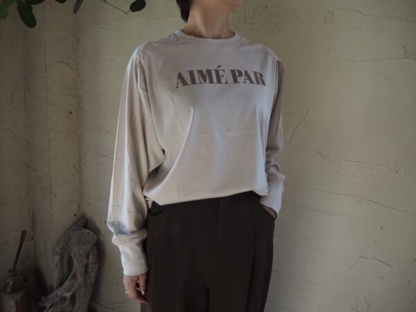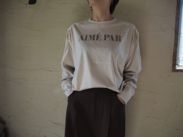 ロンT色違い、ライトベージュベースにブラウンのロゴカラー