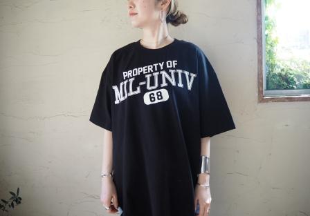 カレッジロゴをベースに洗いを繰り返しグラフィックが歪んだイメージをひび割れプリントで表現