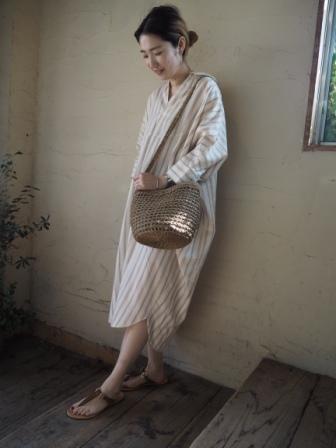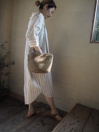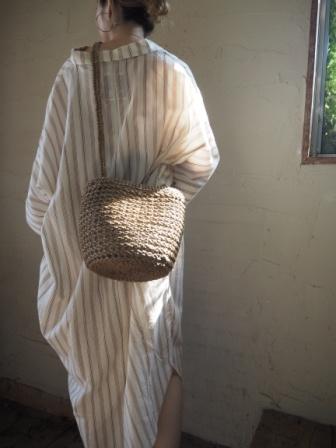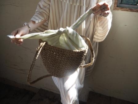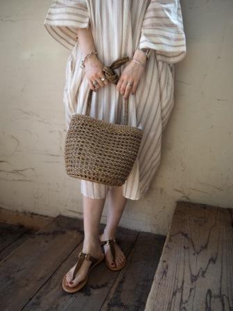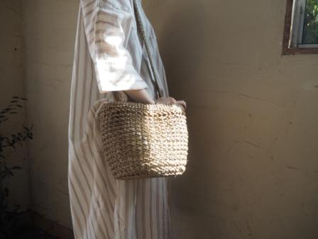天然素材を使用、ざっくり編み立てられていますが中には巾着が付いていて見えないデザインです