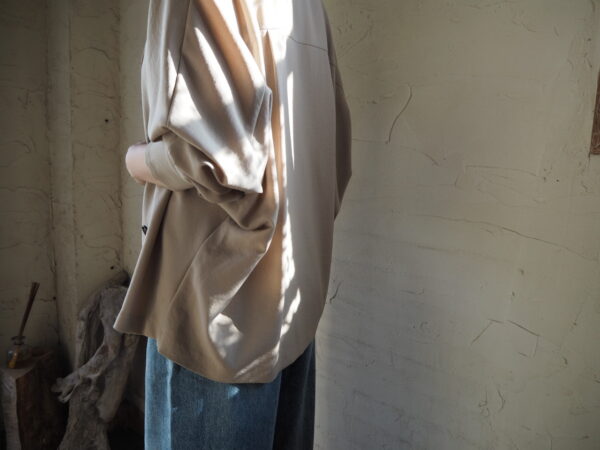 サラッとした素材で落ち感あり、ドルマンスリーブなので暑さも感じずとても着やすい