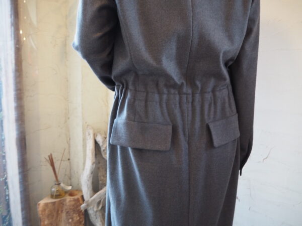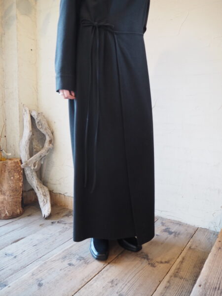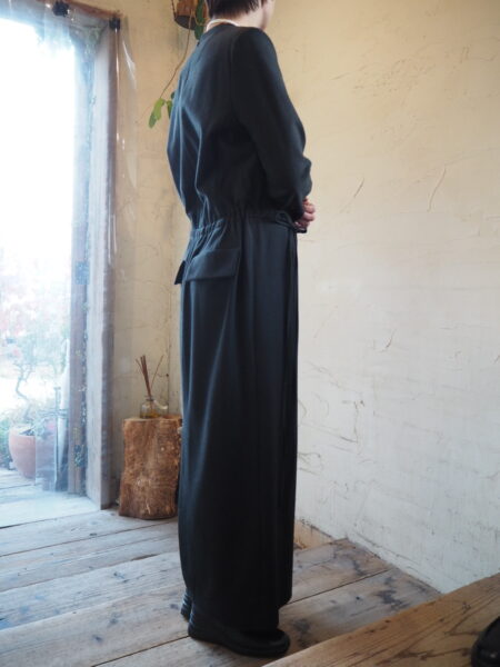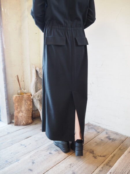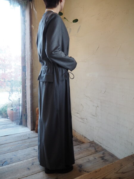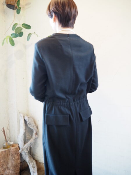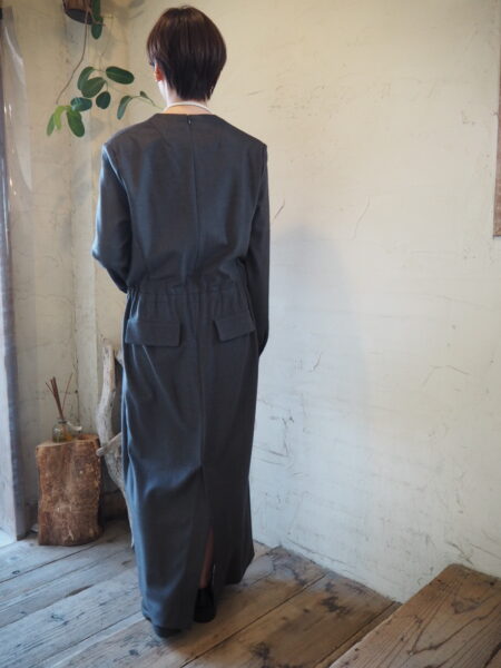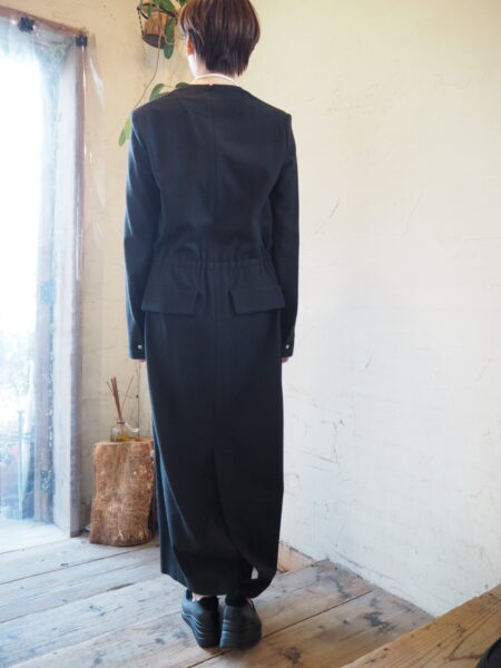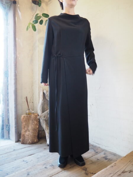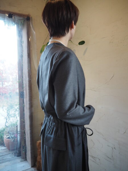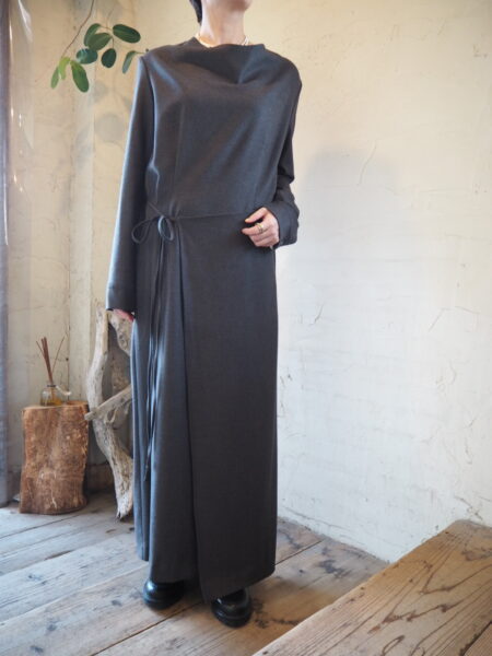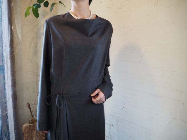 【 ETRÉ TOKYO 】ウーステッドドレープネックワンピース color_charcoal/black material_polyester/rayon/wool/acryyl/polyurethane size_S/M price_37.400