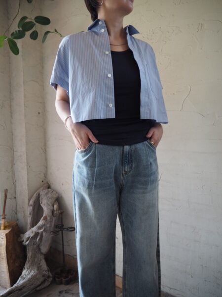 ショート丈なので先ほどのタンクに羽織ったり、ワンピースのプラスアイテムにも
