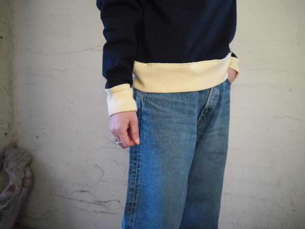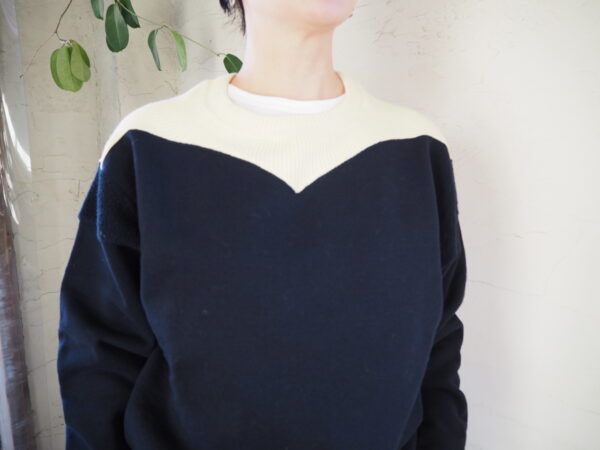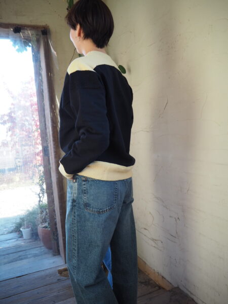 ネイビーベースにアイボリーのニット切り替えです
