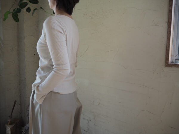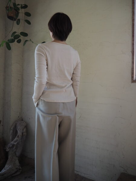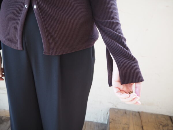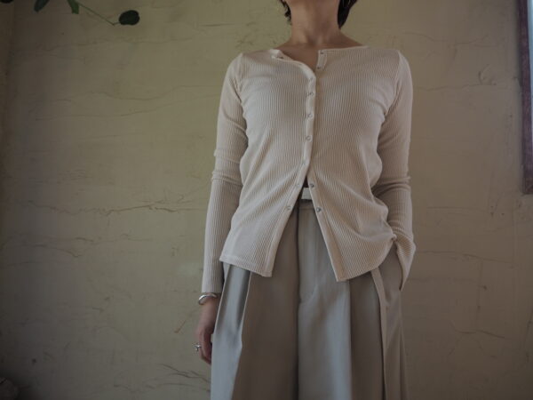 凸凹のあるリブ素材がカジュアルな雰囲気に。