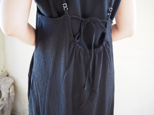 背中はグッと深めに開き、さらにUライン&リボンで腰回りも細見え。
