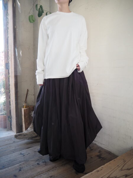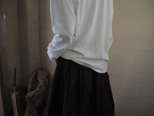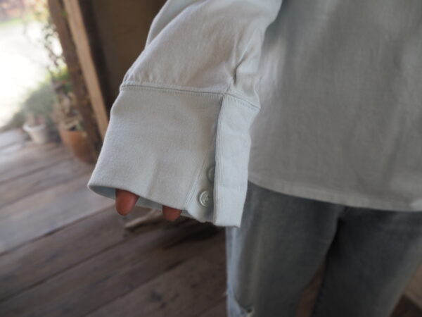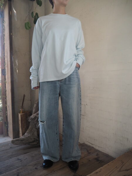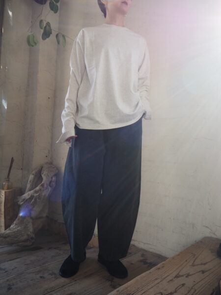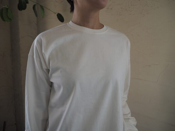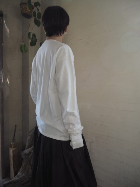 シンプルな中にもカフスのような仕様がシンプルなロンTeeに奥行きをもたらし、さりげないアクセントになっています。