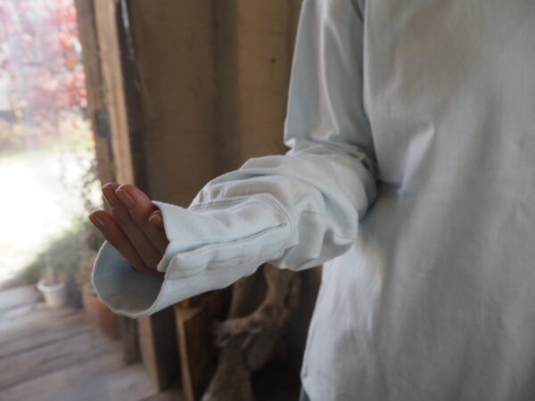 袖口には小さなボタンを添え、ディテールをさりげなくプラス。