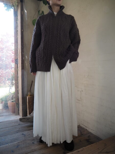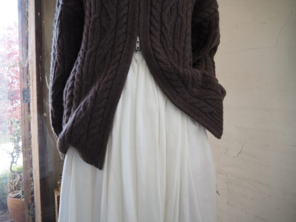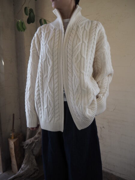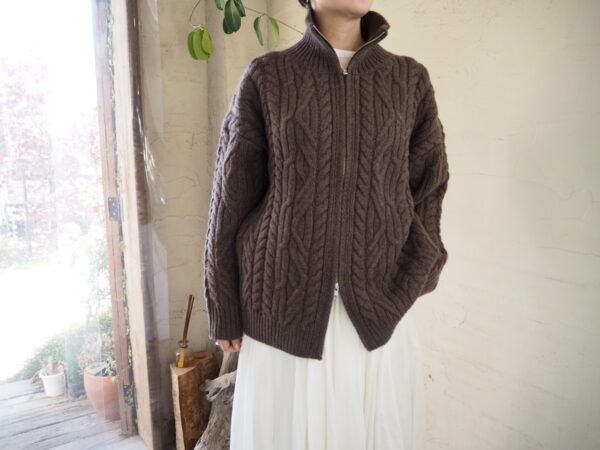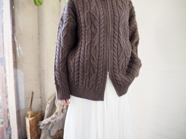 立体的な編地が目を惹く、存在感抜群のケーブルニットカーディガン。
