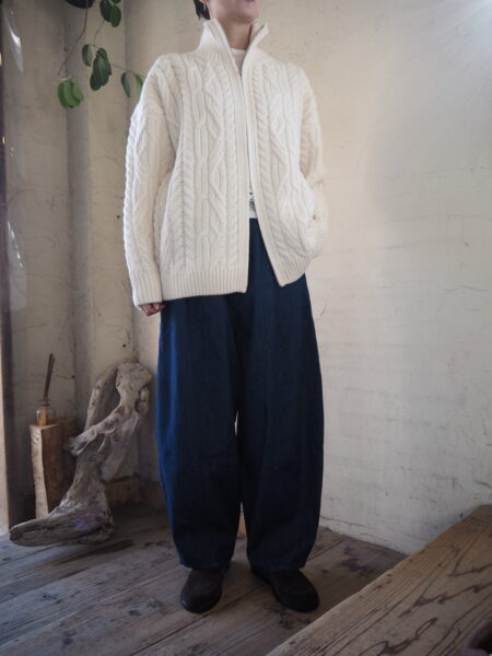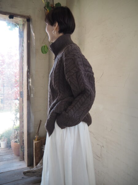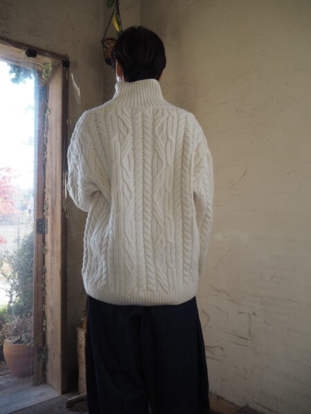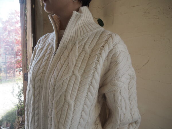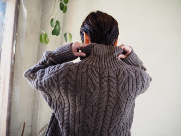 重たさは少しありますが、カウチンのようなしっかりとした編み地です。