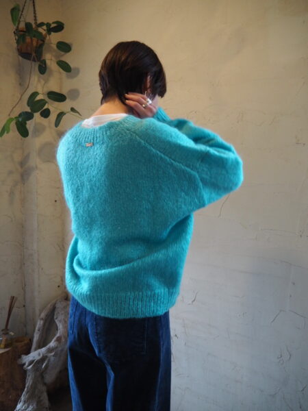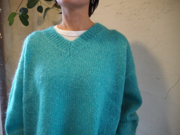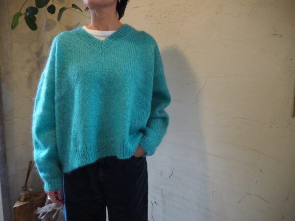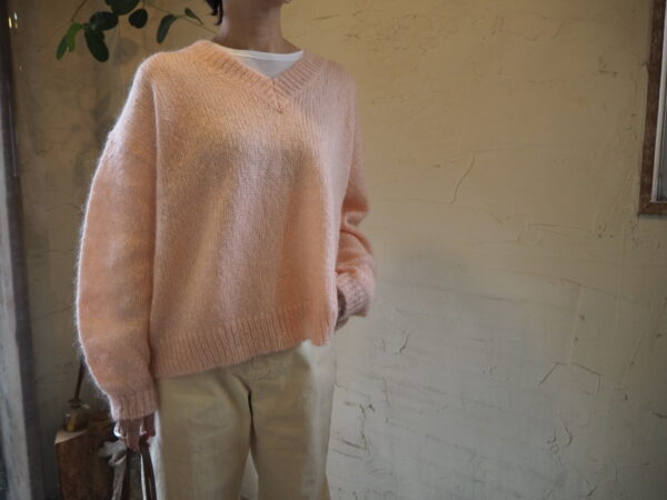 ネック周りは太めリブ編みで、綺麗なVネック仕上がり。