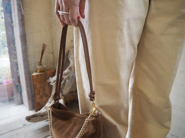 旬なスタイリングへ導いてくれるスウェードショルダーバッグ。