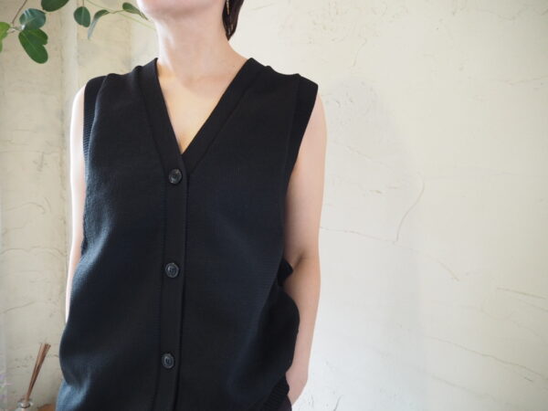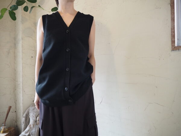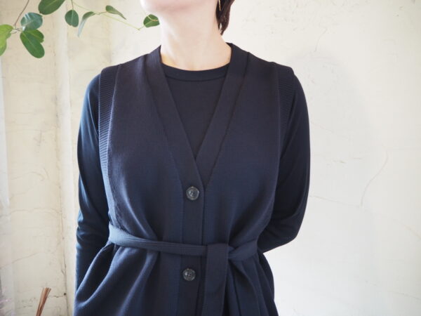 シーズンレスで長く着用できるロングベスト。