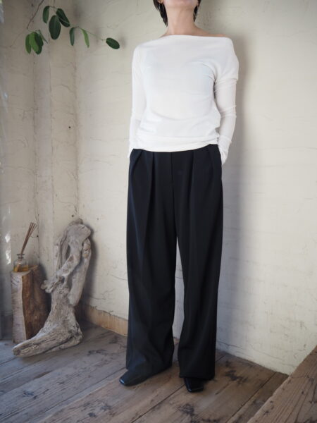 もっちりと、ストレッチの効いた素材はカットソー感覚で着用できます。