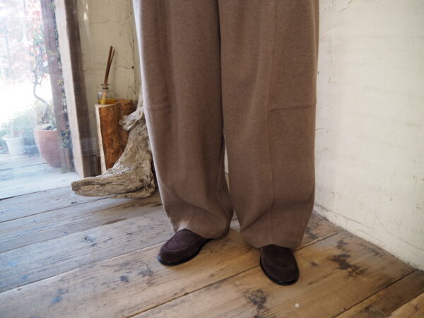 ヒップから裾にかけて丸みを出した、スリムな足首とゆとりのあるひざまわりが、リラックス感とスタイリッシュさを完璧に組み合わせているシルエット。
