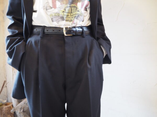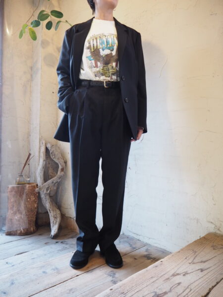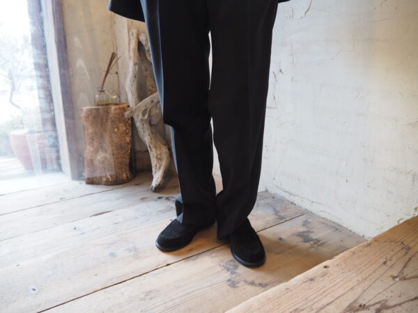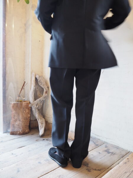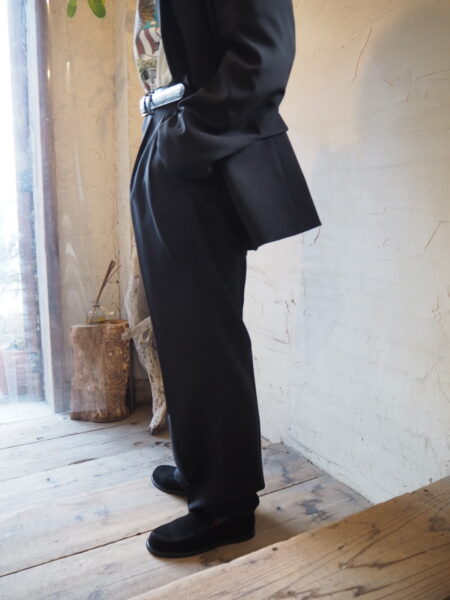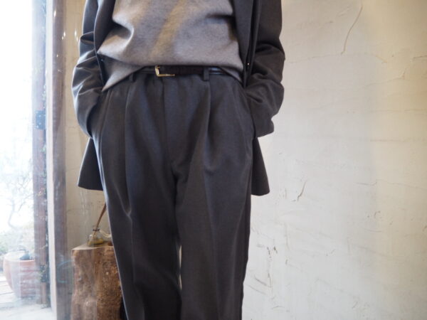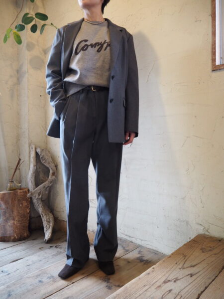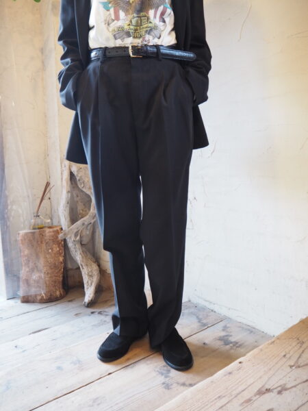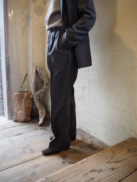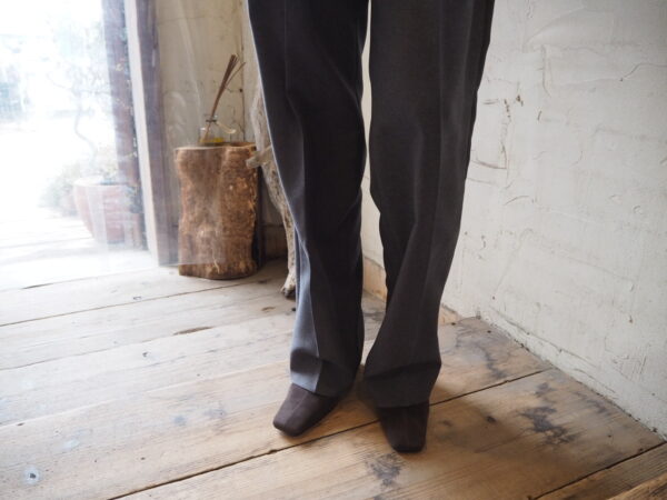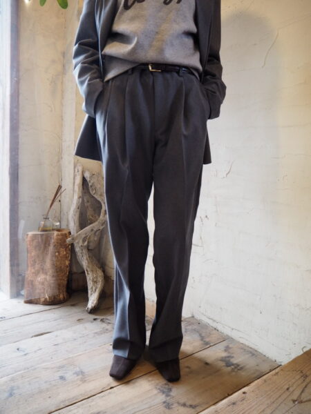 古着屋に並ぶ“おじさんパンツ”をヒントに、メンズの工場で作った、2タックパンツです。