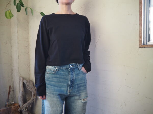 【 ANTHOM 】カシミヤ混ニットソークロップド丈ロンT color_gray/black materia_cotton/cashmere size_F price_18.480