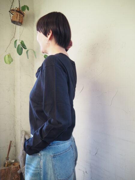 ボトムとのレイヤードスタイルを楽しめるよう、裾の長さにこだわった一枚です
