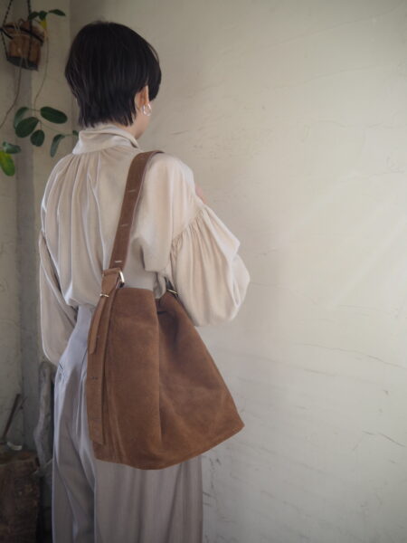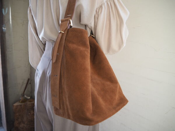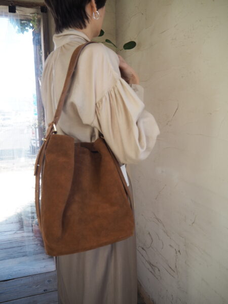 牛革素材でしっかりとした作り、スエードならではのクッタリ感が可愛いバッグです