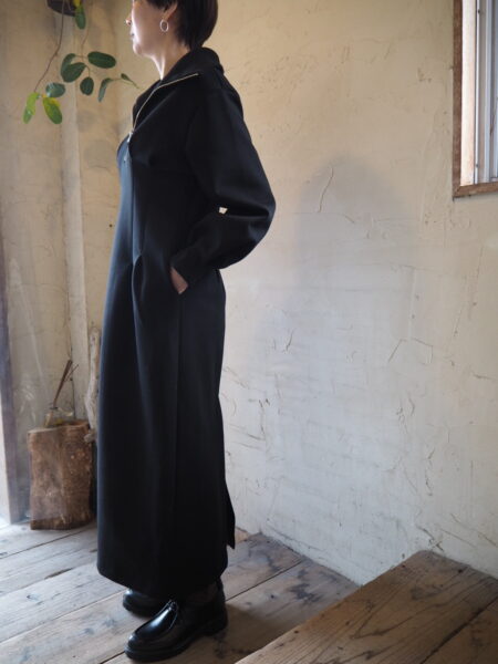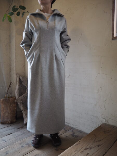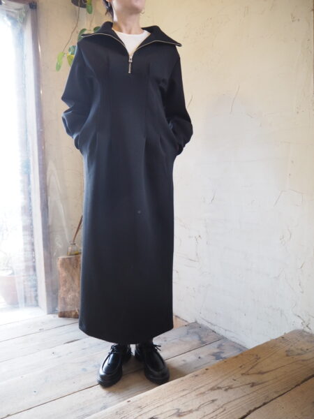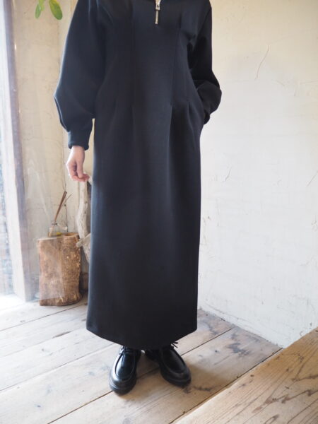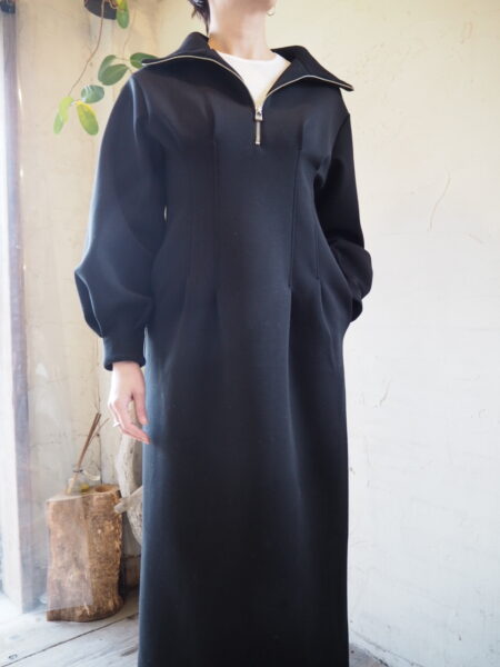 【 emmi 】ハーフジップダンボールワンピース color_grey/black material_polyester/cotton/polyurethane size_0/1 price_19.800