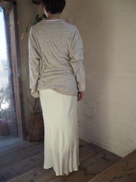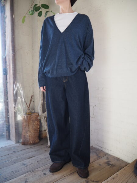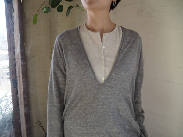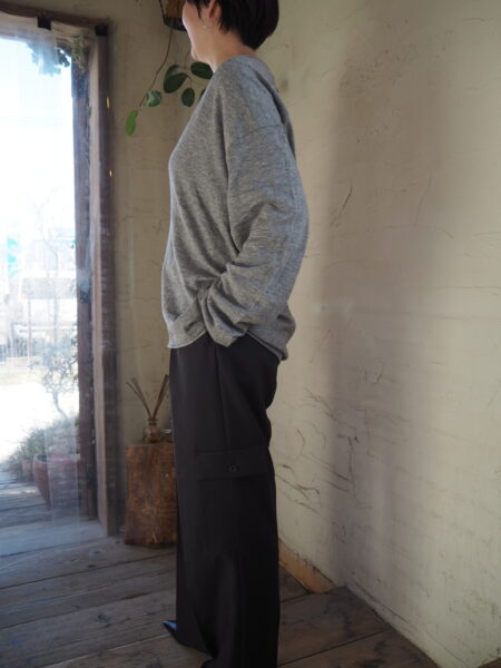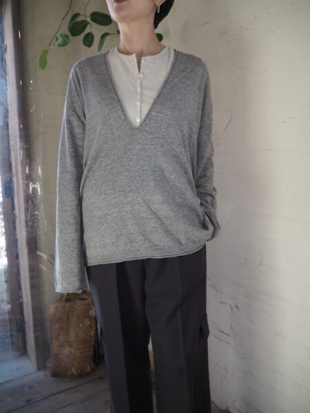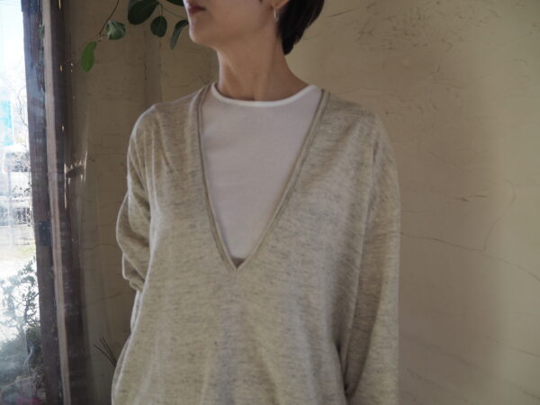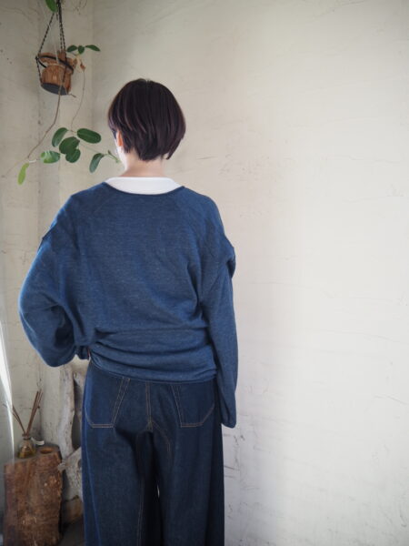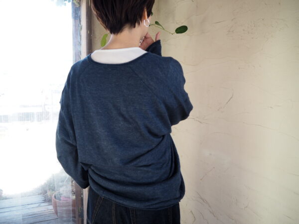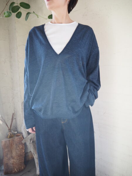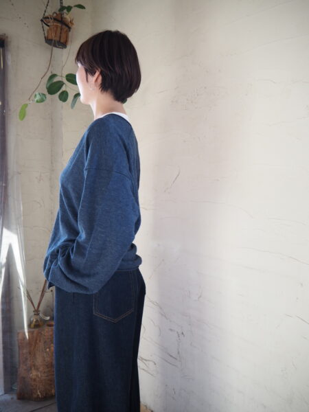 軽やかな編み地は重ね着をしてももたつきもなく、長いシーズン活躍する一枚です
