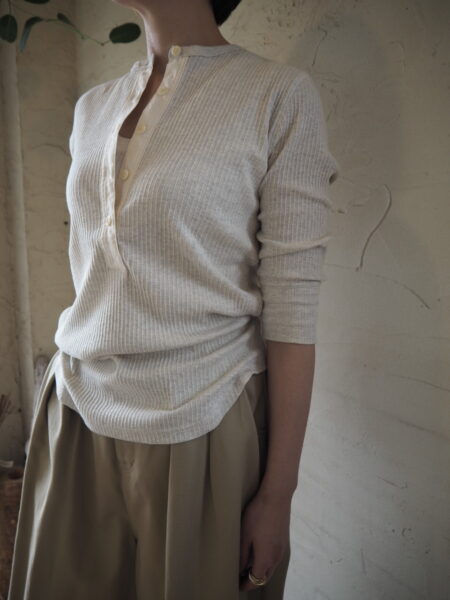 ヴィンテージライクなリブ素材が生み出す、さりげない表情と着心地の良さが魅力のヘンリーネックプルオーバー