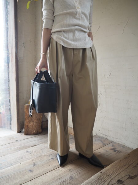 【 ETRÉ TOKYO 】スリーブヘンリーネックPO・ソフトコットンタックカーブパンツ・ボンディングレザートートバッグ //2026.04.08