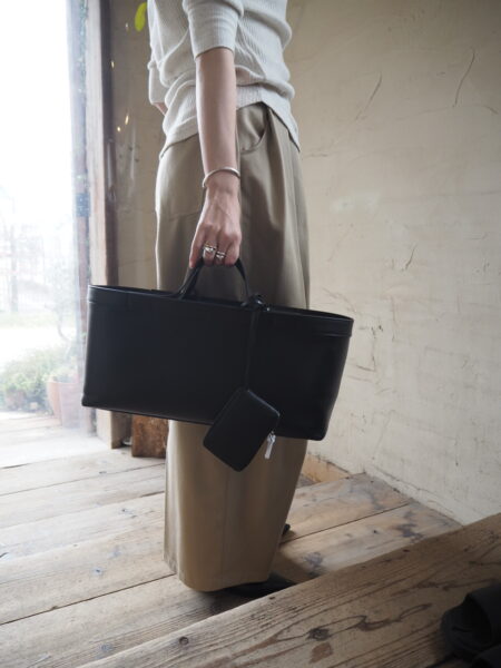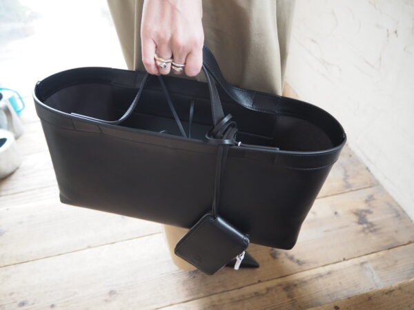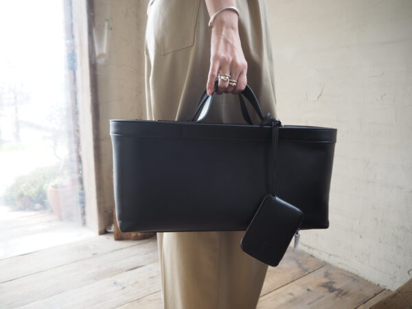 上質なレザーの風合いを活かし、ミニマルなデザインで仕上げたボンディングトート