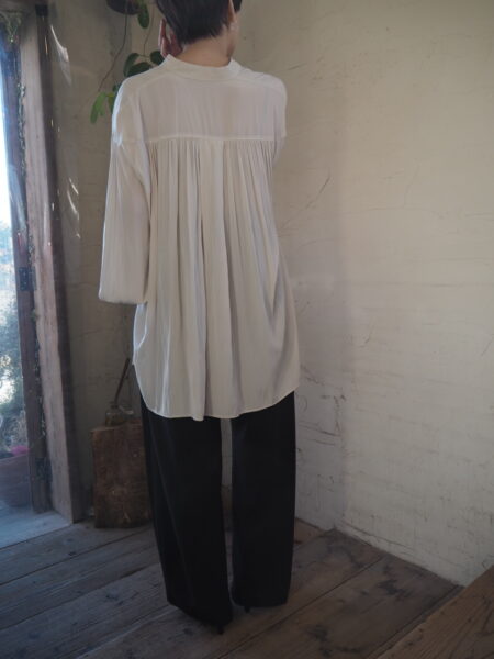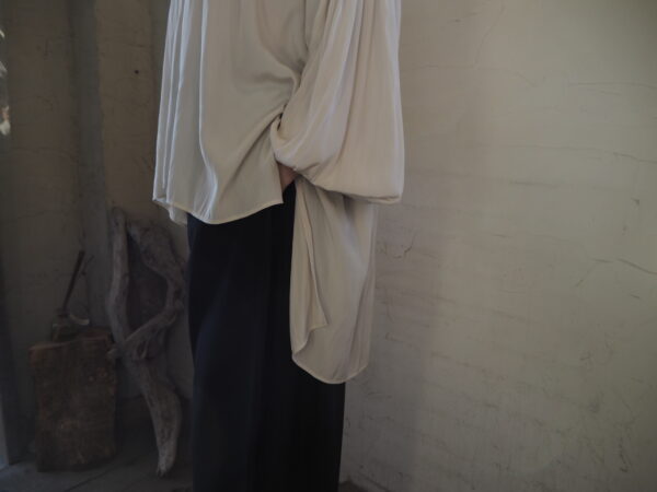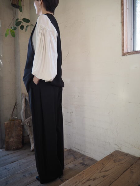 サイドが大きめに開いているのでブラウスの袖がドルマンでもすっぽり楽々収納できます