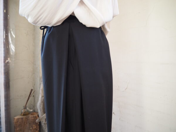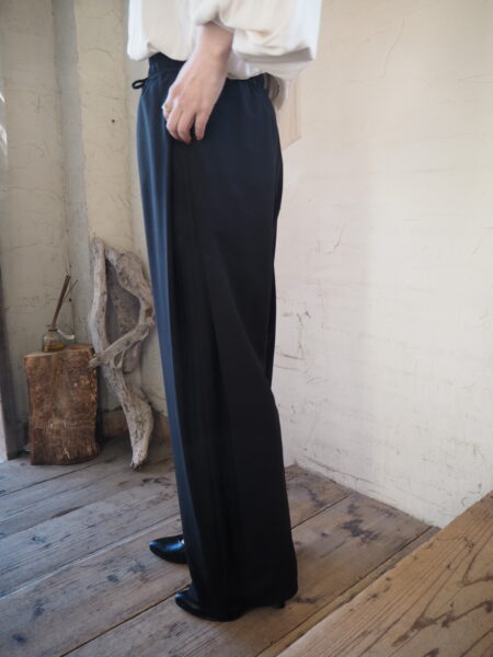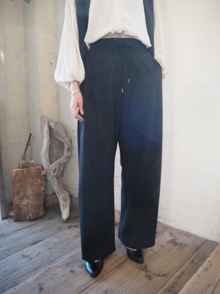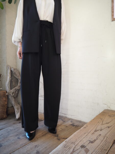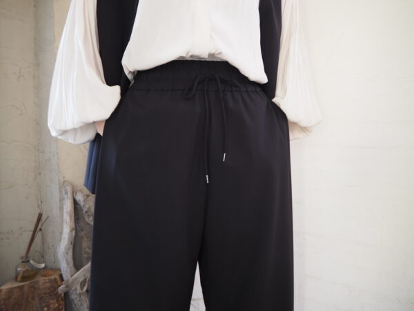 ウェストはゴム&紐でイージーパンツデザインですが、素材はオケージョン対応のキレイ目素材です