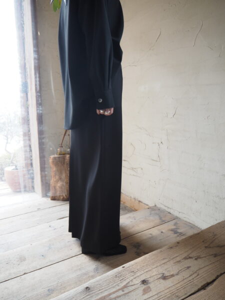 裾に向かってややフレア気味、フルレングスでカッコイイ雰囲気に
