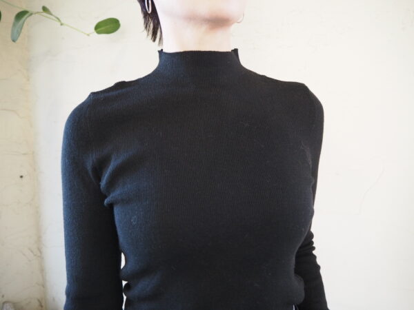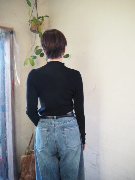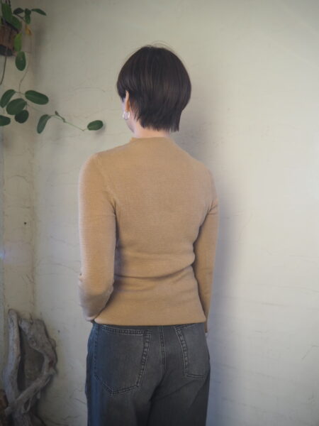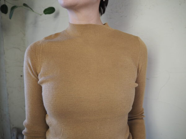 薄手で柔らかいwool 100%素材を使ったスタンドネックのニット