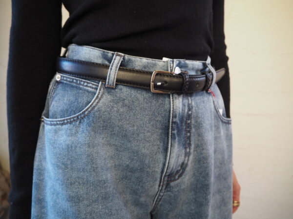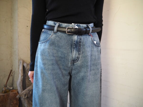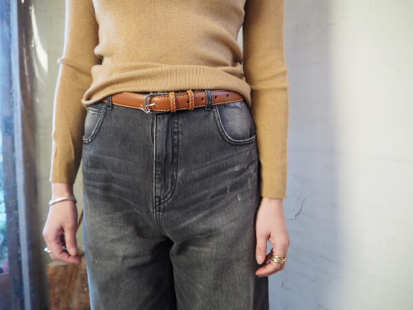 デニムスタイルにはベルトでキュッと留めるのがおすすめです