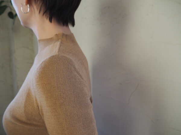 ハイネックニットには色違いのキャメルもあります