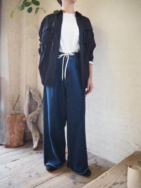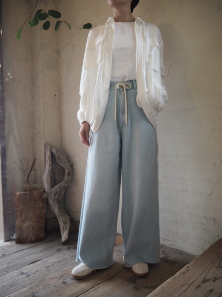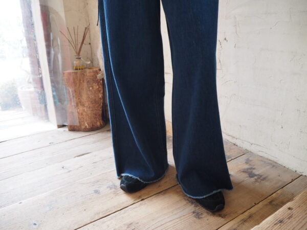 デニム特有のかたさがなく、動くたびに自然な落ち感が生まれる軽やかな履き心地が魅力のソフトワイドdenim。