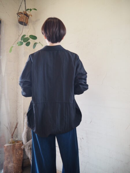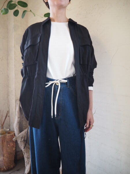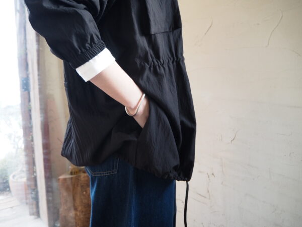 裾はドローコード仕様で、絞ることでシルエットの変化を楽しんでいただけます。