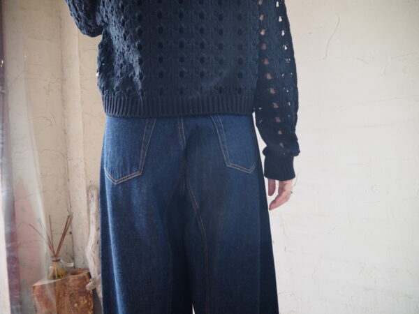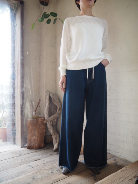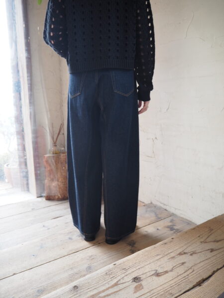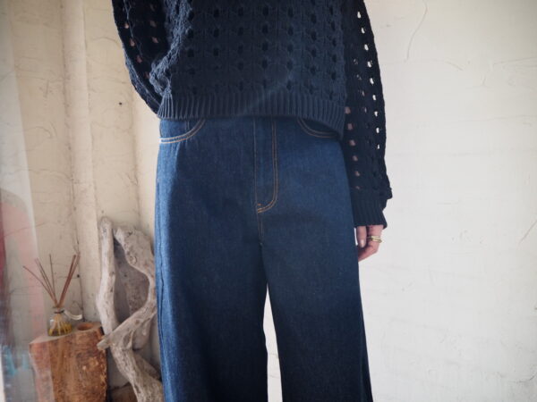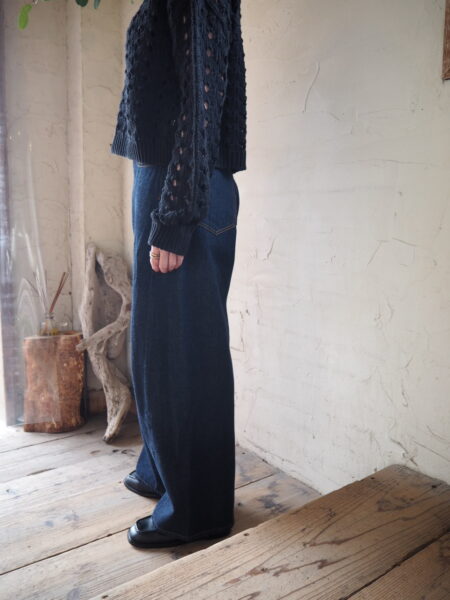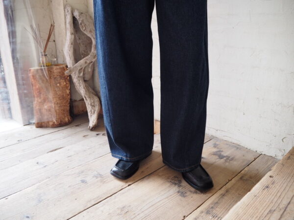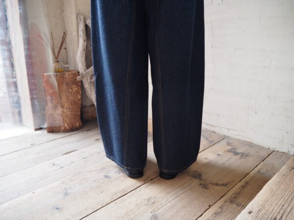 厚手すぎず軟らかな綿100%のデニム素材を使用したパンツ。