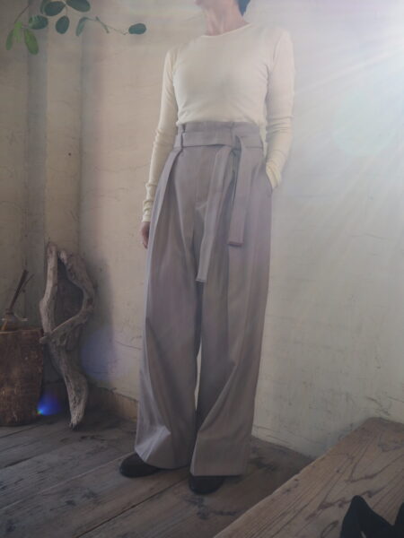 素材の落ち感が加わることでリラックス感がありながらも品のある佇まいに仕上げています。