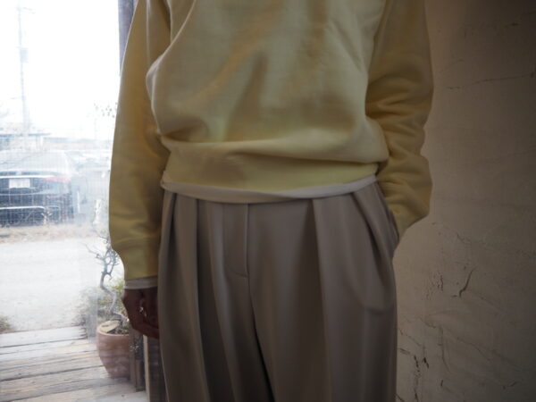 ウエストはフラットに仕上げることで、タックインしたスタイルも様になります。