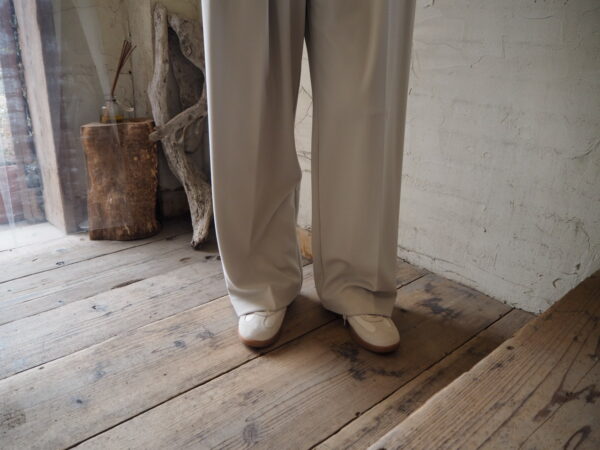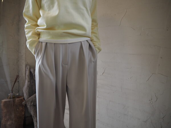 旬なニュアンスカラーで魅せる、大人のツータックワイドパンツ。