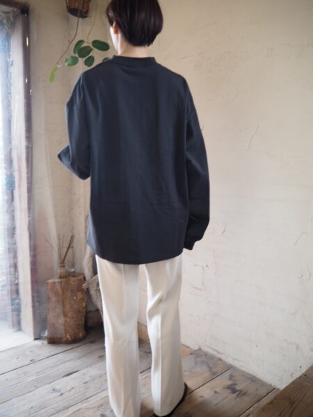 ドライな質感に拘った、少し硬さのあるオリジナル天竺を使用。