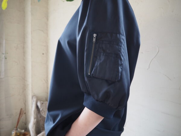 ハーフスリーブのMA-1の袖とテーラーカラーのデザインがとことんモードで、