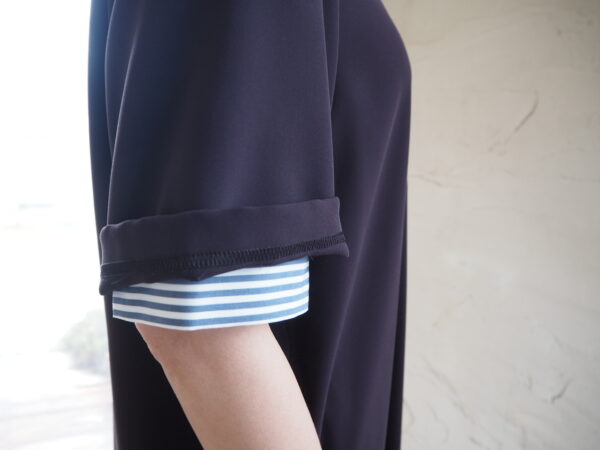 遊び心もあり、二の腕もお洒落に包み込んでくれる安心長め袖です。